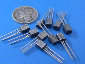 Los transistores (BC327, PNP) tienen tras patas y una cara aplanada para indicar su orientación. |