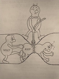 Cuanto más Ohmios tiene, más tira de la cuerda (y menos amperios pueden pasar...)