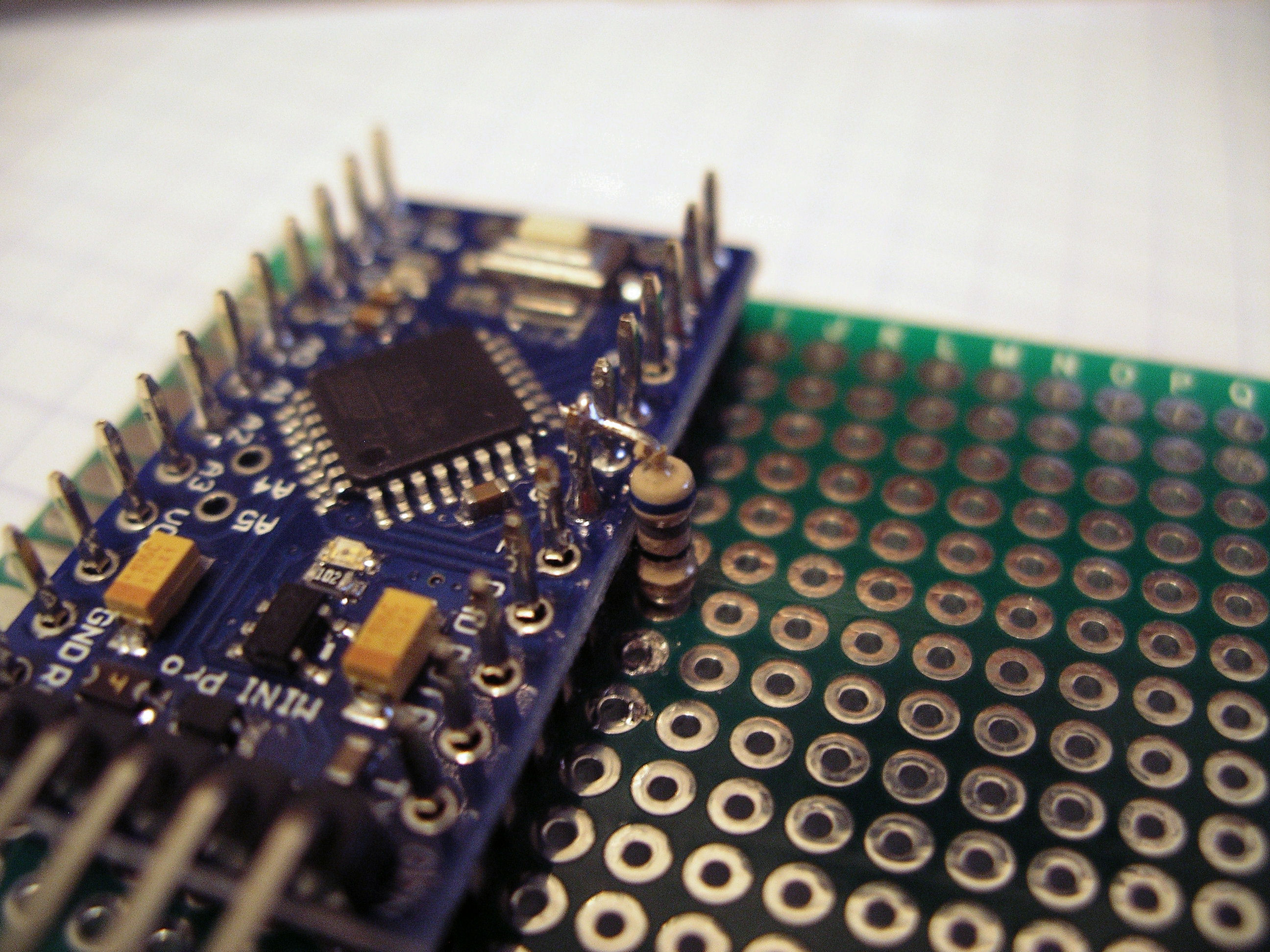 Suelda tres resistencias de 470 Ohmios en los pines A0, A1, A2. |