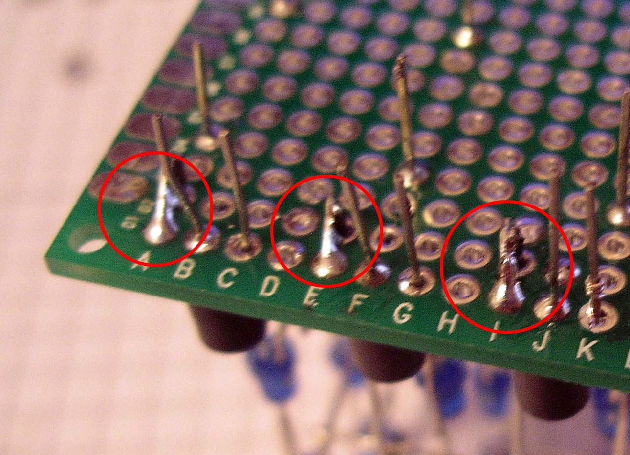 Dobla las patas de los transistores debajo de la placa para tocar los tres alambres nuevos. Suelda la conexión entre ellos y recorta el alambre que sobra. |